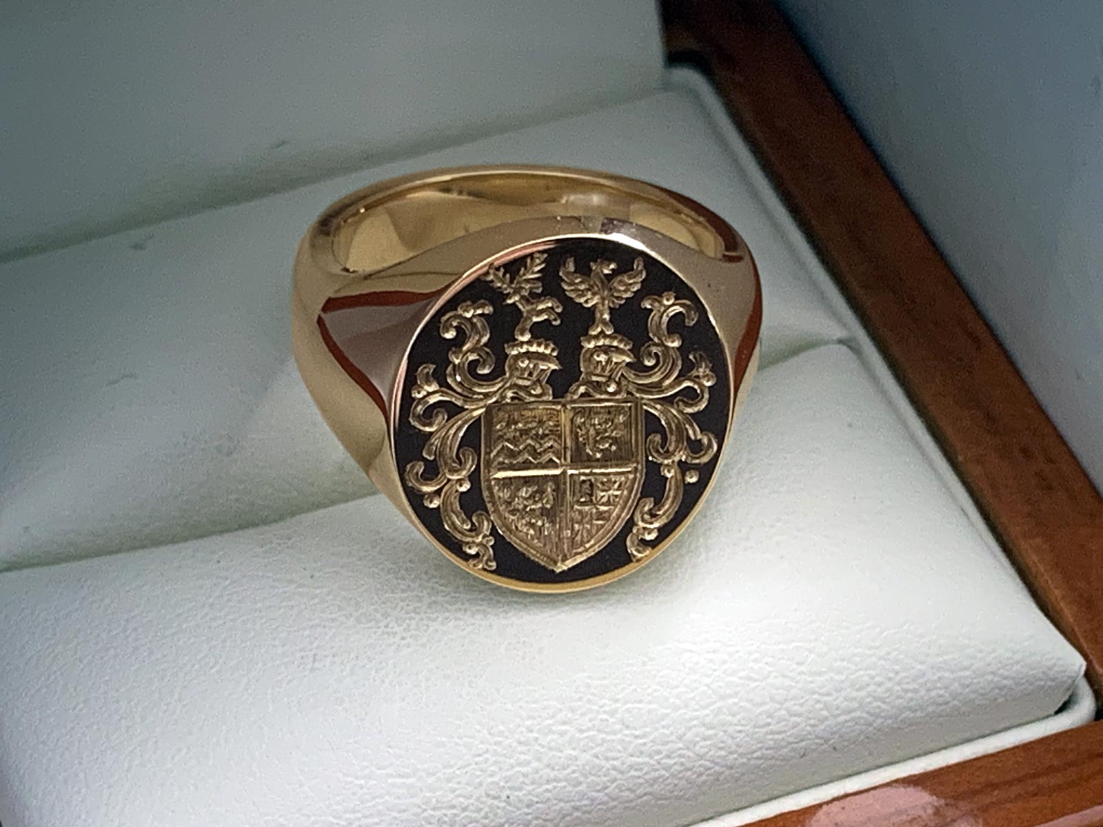 - Gold signet ring complete with your hand engraved, highly detailed coat of arms